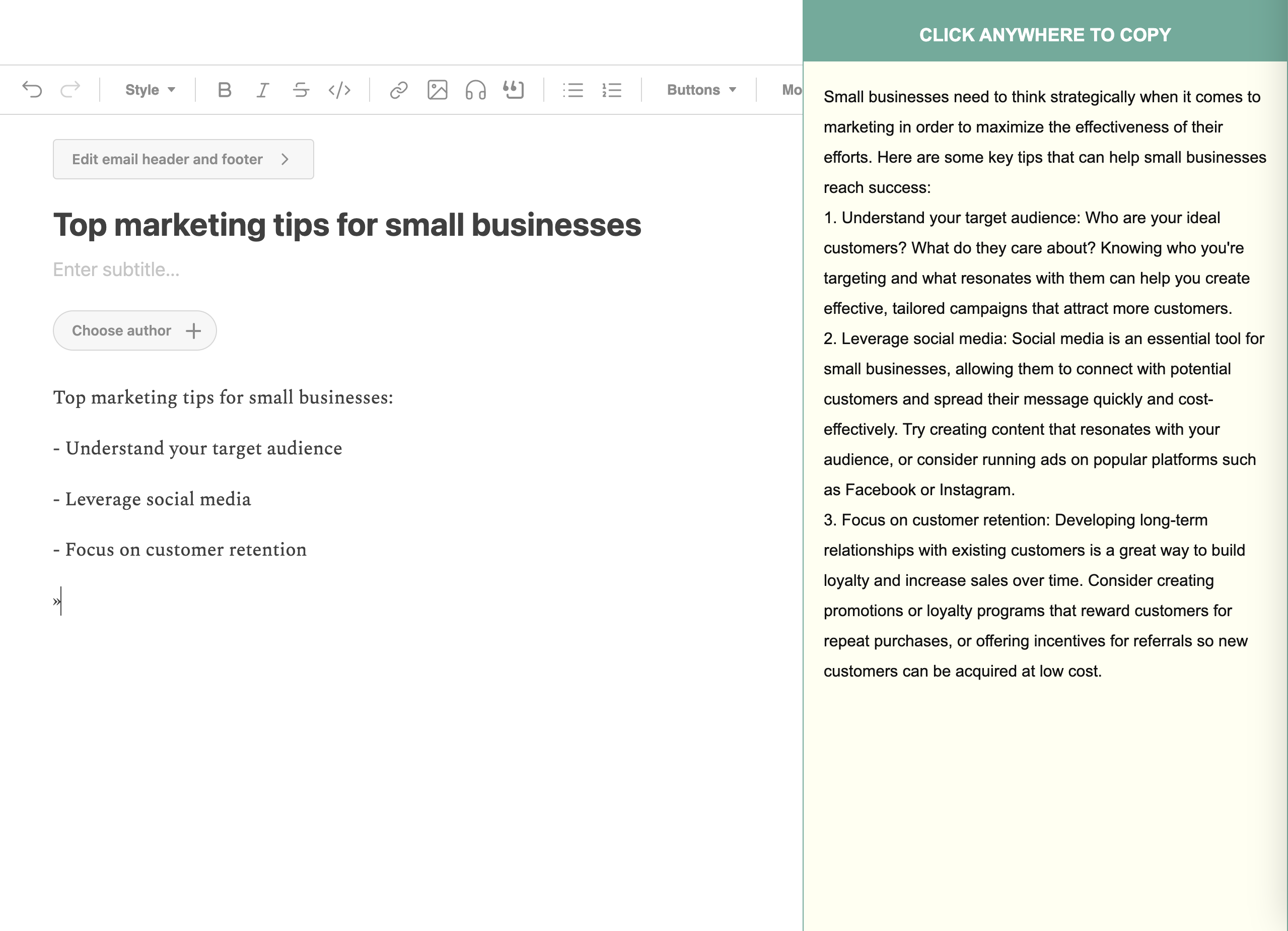 If you're writing a blog post about marketing tips, you could type something like:&#x20;